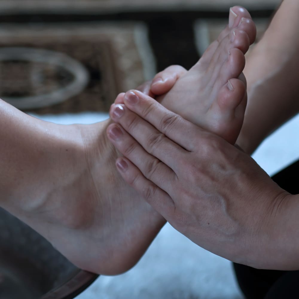 海辺を思わせるほのかな香り、柔らかな水の粒子、足湯と呼ぶにはあまりに贅沢なフットマッサージです。