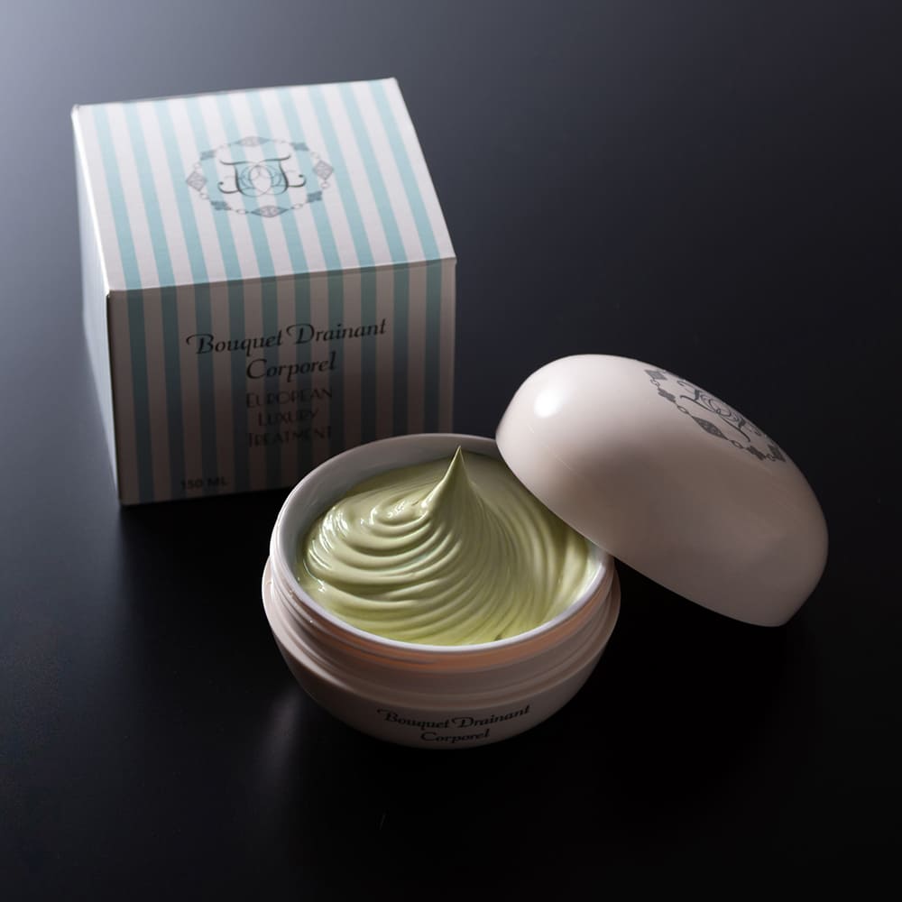 ブーケドレナンコーポネルは、南仏産プレミアムトリートメントクリーム。むくみケア、引き締め、肌の艶アップを同時に叶えます。5種類の精油を配合、シトラスの香りは心身を緩める効果もあります。